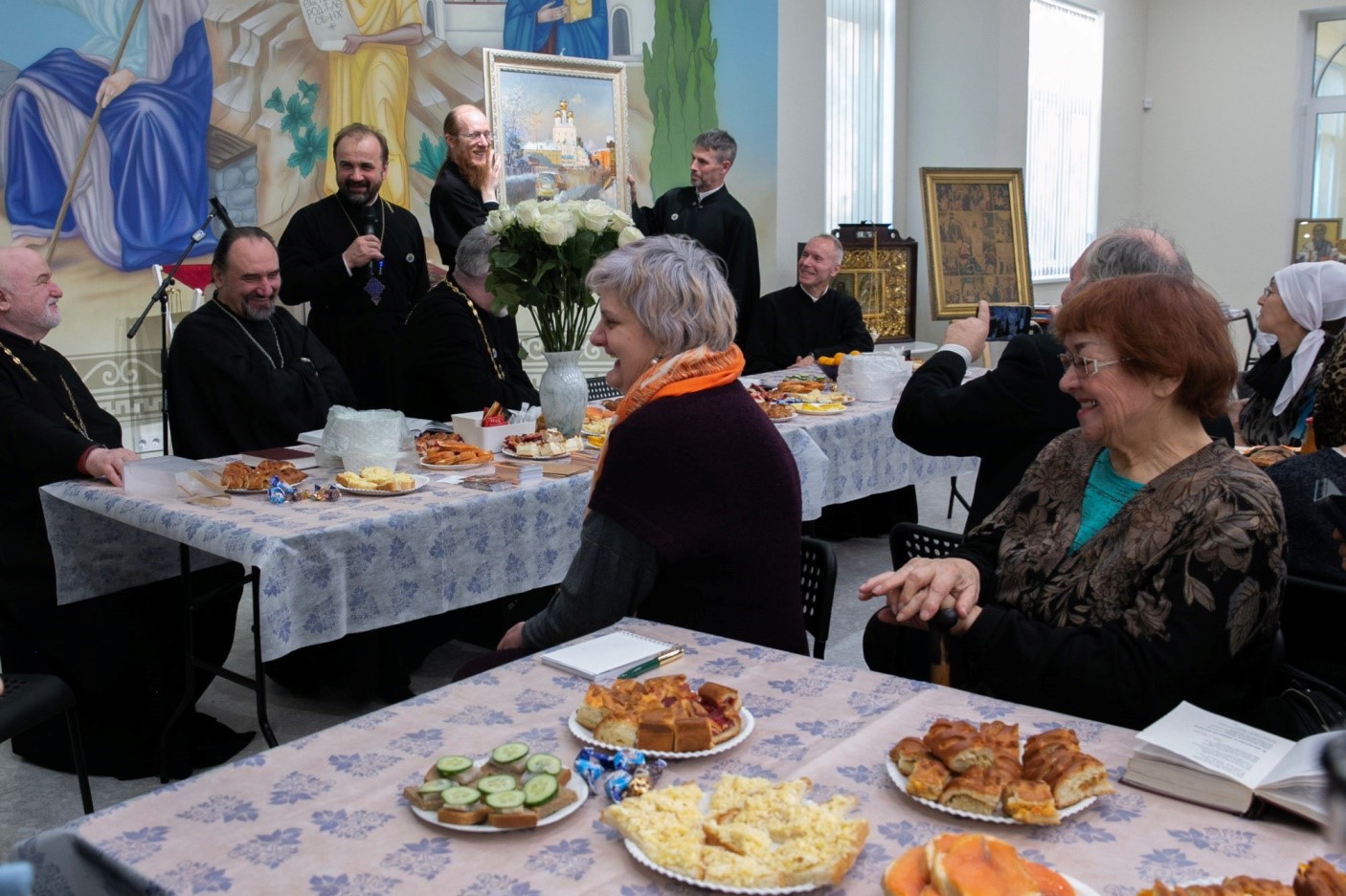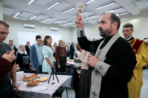 Трогательным моментом стало вручение даров от Феодоровского собора, который 24 года служил временным домом для общины. Протоиерей Александр передал новому центру:
